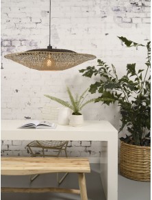 Die minimalistische und zeitgenössische Form wird mit Harmonie mit dem warmen Aussehen des Naturholzes kombiniert. Borneo ist mit einer großen visuellen Leichtigkeit angesichts seiner perforierten Struktur ausgestattet. Die Bambusblätter ragen an den Wänden zarter Schatten. Borneo Suspensionen werden in China handgefertigt, jedes Element ist eine echte Herausforderung. Das mitgelieferte Kabel ermöglicht die Dezentralisierung des Lampenschirms im Vergleich zur Stromversorgung. GOOD&MOJO bietet umweltfreundliche Beleuchtung, die vollständig aus nachhaltigen und/oder recycelten Materialien besteht