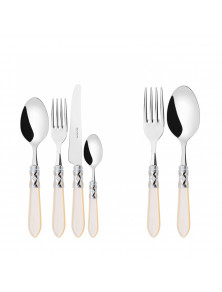 Set 24 pezzi Das farbige Besteck Aladdin Ghiera Cromata wurde geschaffen, um Magie und Leistung auf Ihren Tisch zu bringen. Jedes einzelne Stück wird mit Sorgfalt und Aufmerksamkeit hergestellt: Sie bestehen aus Edelstahl 18/10 und zeichnen sich durch einen eleganten Acrylgriff in Kombination mit einem kostbaren geflochtenen Ring mit polierter Stahloberfläche aus.