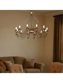 Die CORTE SP12 Pendelleuchte von Ideal Lux ist ein ausdrucksstarkes und elegantes Modell, das große Räume mit handwerklichem Charme und klassischer Raffinesse erhellt. Die komplett aus handgeformtem Metall gefertigte Struktur ist das Ergebnis traditioneller Verarbeitungstechniken, die jedes Detail zur Geltung bringen. Ihre geschwungenen Linien erinnern an klassische Kronleuchter, neu interpretiert für moderne und rustikale Einrichtungen.