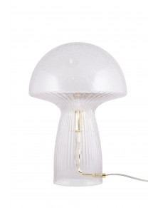 Inspiriert vom Wald kommt diese Tischlampe als Pilz dargestellt. In transparentem Glas hat die "cap" schöne kleine Luftblasen im Glas. Die Lampe hat eine kontrastierende Metalllampe in Messingfarbe