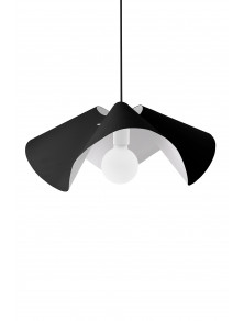 Volang hat eine wellige und weiche Form, die mit dem starren Metall, mit dem es hergestellt wird, kontrastiert, kann von verschiedenen Winkeln anders wahrgenommen werden. Die Außenseite der Lampenschirm ist mit opaken Farben lackiert, während der Innenraum und der Lampenhalter weiß lackiert sind, um das Licht angenehm zu verbreiten. Der Lampenstecker für den Deckenanschluss wird separat verkauft.