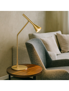 Das Gestell besteht aus pulverbeschichtetem oder plattiertem Metall, was Stabilität und eine hochwertige Oberfläche gewährleistet. Der verstellbare Diffusor lässt sich drehen und neigen, um das Licht präzise auszurichten – ideal zum Lesen oder Arbeiten. Das PVC-Kabel mit integriertem Schalter sorgt für einfache Bedienung. Erhältlich in Schwarz, Nickel satiniert und Messing satiniert.