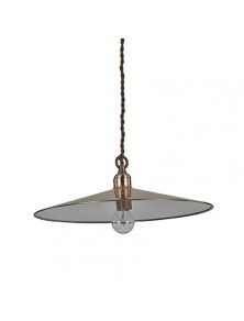 Gestell, Diffusor und Lampenhalter-Abdeckung bestehen vollständig aus Metall und sind in brünierter oder Kupferausführung erhältlich. Das stoffummantelte, geflochtene Kabel verleiht der Leuchte eine elegante Note und macht sie zu einem dekorativen Highlight.