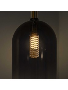 Vergoldete Metallrahmen und Rosette mit magnetischer Verschluss ohne Schrauben. Schwarzes PVC-Kabel. Transparenter Glasdiffusor mit grauem Farbton.