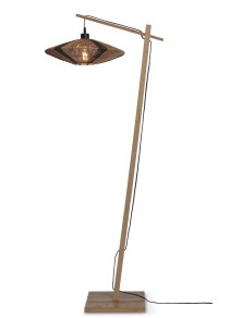 Un estilo bohémien para esta lámpara de Bhután que combina inteligentemente la materia natural y el diseño contemporáneo, en un espíritu étnico chic contemporáneo. La pantalla de doble pared está hecha a mano en Vietnam con varillas de bambú entrelazadas de dos tonos, naturales y negras. Cada pieza es un verdadero desafío técnico cuya producción requiere una habilidad excepcional. La estructura está en bambú natural o lacado negro. BUENA INFJO proporciona iluminación ecoresponsable hecha enteramente de materiales sostenibles y/o reciclados