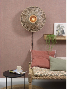 Un estilo bohemio para esta lámpara de pared de Kalimantan que mezcla inteligentemente la materia natural y el diseño contemporáneo, en un espíritu étnico chic muy contemporáneo. La pantalla de doble pared está hecha a mano en Vietnam por varillas de bambú tejidos. La lámpara de pared Kalimantan tiene una gran ligereza visual gracias a su estructura perforada. El bambú proyecta sombras delicadas. Gracias al cable eléctrico se puede colocar libremente en la pared. BUENA INFJO proporciona iluminación ecoresponsable hecha enteramente de materiales sostenibles y/o reciclados