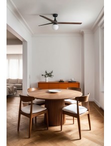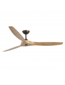 Ventilador de techo con motor moderno DC ideal para 17m2 habitaciones. El acabado de las cuchillas es madera, no reversible. Funciona con control remoto, incluyendo. Tiene 5 velocidades ajustables con un consumo de 3-7-12-17-38W y 58-105-131-148-195 revoluciones por minuto según la velocidad.