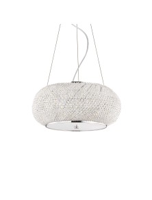 Marco de metal cromo. Elementos decorativos en cristal de perlas. Suspensiones con cables de acero ajustables en longitud de las abrazaderas automáticas de cable.