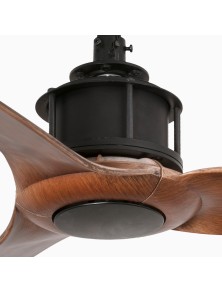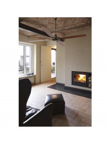 Este ventilador funciona con un motor de corriente alterna (AC) fiable y resistente, y se controla mediante un regulador de pared incluido. Permite seleccionar entre cinco velocidades, con un consumo de entre 25 W y 70 W y una velocidad de rotación de entre 115 y 220 rpm. Malvinas incluye la función inversa verano/invierno, que invierte el giro de las aspas para aprovechar mejor el aire caliente en invierno y refrescar en verano. Las aspas son reversibles, lo que permite adaptar la estética a tu estilo decorativo.