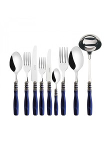 El cubierto coloreado Aladdin nacido para traer magia y rendimiento a su mesa. Cada pieza se hace con cuidado y atención: en acero inoxidable 18/10, se caracterizan por un elegante mango acrílico combinado con una preciosa corona tejida con acabado plata antiguo.
