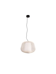 Suspensión con difusor de plástico opal. Base Lámpara colgante aluminio. Cable eléctrico en PVC.