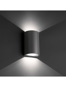 Mur extérieur sconce avec technologie LED, en aluminium avec diffuseur en verre trempé, équipé d'un faisceau lumineux supérieur et inférieur, parfait pour l'éclairage décoratif des jardins et des terrasses.