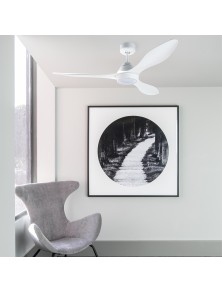 Ventilateur de plafond blanc avec moteur DC avec lumière, idéal pour les chambres jusqu'à 17,6m2. Il fonctionne avec télécommande, y compris. Il a 5 vitesses réglables avec une consommation de 4-9-16-23-35W et 86-108-130-145-175 tours par minute selon la vitesse. Ce ventilateur a fonction inverse estival-hiver et convient aux plafonds inclinés.