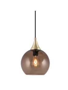Bébé lampe suspension verre brun avec détails en laiton brossé.