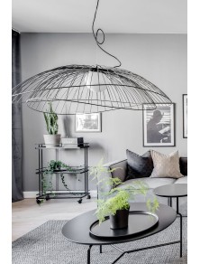 Fait de métal noir mat dans la forme d'une race donne à la lampe une expression graphique et moderne. Vous pouvez choisir comment placer les 2 abat-jours: l'un sur l'autre ou l'autre à l'intérieur de l'autre.