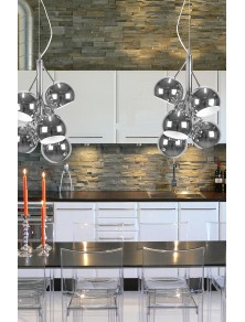 Lampe lampe suspension en métal chromé formé par un cluster de 6 boules avec l'intérieur émaillé blanc pour propager la lumière