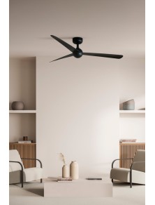Ventilateur de plafond avec moteur DC moderne idéal pour 17m2. La finition des lames est bois, non réversible. Il fonctionne avec télécommande, y compris. Il a 5 vitesses réglables avec une consommation de 3-7-12-17-38W et 58-105-131-148-195 révolutions par minute selon la vitesse.