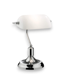 LAWYER TL1 by Ideal Lux is a table lamp with a refined, timeless charm, reinterpreted with elegant modern finishes. The metal frame is available in brass, chrome, or burnished versions, while the blown and cased glass diffuser provides a soft and pleasant light, ideal for creating warm and inviting atmospheres.