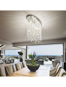 Elliptical chrome frame. Pendants with elements in octagonal, square, rectangular and final drops.
