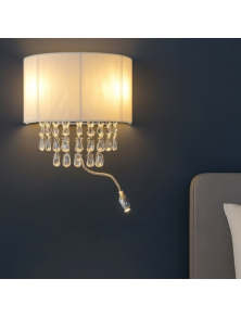 This combination of soft diffusion and shimmering details makes OPERA AP3 ideal for living rooms, elegant bedrooms, entrance halls, corridors and hospitality environments. The E14 socket leaves freedom in bulb selection, while the integrated LED module provides an additional, efficient and long-lasting light source. With its scenic look and quality materials, this applique becomes a decorative element capable of elevating any wall or corner of the room.