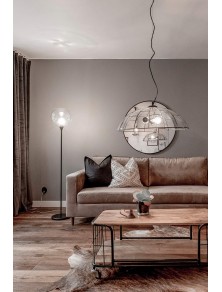 Ritz is made up of a glass that is silver-coloured and becomes transparent smoke when the lamp is lit. The lamp has a matt black coating and transparent cable