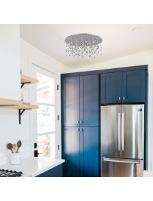 Metal frame. Decorative elements with nylon threaded glass balls. Available with chromed frame and transparent spheres or with matt white frame and white and transparent spheres.