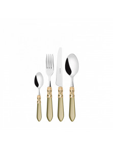 The cutlery colored Aladdin Gold are born to bring magic and performance to your table. Every single piece is made with care and attention: the cutlery 18/10 stainless steel with PVD Gold finish are characterized by an elegant acrylic handle combined with a precious woven wreath with gold finish.