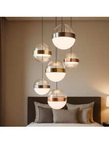 A refined and expressive pendant, adding personality and luminous elegance to interior environments.