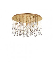 Metal frame with gold finish. Decorative elements in transparent pearl crystal. The upper part alternates transparent elements and smoke elements.