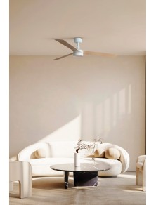 RUDDER is an ultra-compact ceiling fan, ideal for environments up to 13 m2. The wooden blades wrap the engine for an ultralight effect. Powered by remote control, included. Thanks to the reverse function you can change the direction of the fan blades and use it both in summer and winter. In summer it will help to create a fresh atmosphere and in winter will improve the efficiency of the heating system by circulating the warm air that accumulates in the ceiling. The DC motor or DC motor is characterized by a consumption of less than 70% compared to traditional fans, comparable to that of a LED bulb. They are super silent fans during operation. It is also characterized by the rapidity of start, acceleration, deceleration and stop and for the precise control of speed. The engines are lighter, which facilitates the installation. They spread heat better, extending their useful life to conventional fans. This fan has 6 speeds, which allow it to always find the most suitable one according to the need of the moment, with different consumption and turns per minute depending on the speed. It has a programmable remote control that allows you to control the fan in a more convenient and simple way. Includes 1 100 mm long additional rod. The fan has the adjustable color temperature, that is to say that it is possible to create different atmospheres in the same room thanks to the three color temperatures of the light available. Suitable for inclined ceilings, it allows the structure to fall vertically so that the fan is always flat compared to the ceiling and guarantees the best operation and comfort.