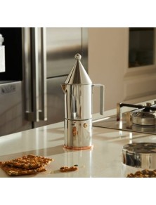 Realizzata in acciaio inossidabile 18/10 con fondo in rame, questa caffettiera si distingue per il suo profilo cilindro-conico, capace di trasformare l’atto del preparare il caffè in un’esperienza estetica oltre che funzionale. Il fondo in rame garantisce un’eccellente distribuzione del calore, mentre il corpo in acciaio inox conferisce resistenza, brillantezza e una qualità duratura.