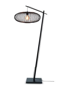 La forma raffinata e contemporanea della struttura, si sposa armoniosamente con l'aspetto a fiore del paralume in bambù intrecciato. Questa lampada ha una grande leggerezza visiva grazie alla sua struttura traforata. La struttura è in legno naturale o laccato nero o bianco. Questa luce è fatta a mano in Vietnam. GOOD&MOJO fornisce un'illuminazione eco-responsabile realizzata interamente con materiali sostenibili e/o riciclati