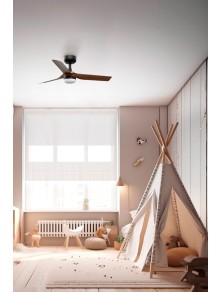HEY TUB S LED è un ventilatore da soffitto dal design compatto e moderno con luce e un motore a corrente continua ultracompatto, ideale per stanze di dimensioni inferiori a 13 m². Le pale in legno avvolgono il motore per un effetto ultraleggero. Si aziona con il telecomando, incluso. Grazie alla funzione inversa è possibile cambiare il senso di rotazione delle pale del ventilatore e quindi utilizzarlo sia in estate che in inverno. In estate, contribuendo ad ottenere un ambiente fresco e in inverno migliorando l'efficienza del sistema di riscaldamento al far circolare l'aria calda che si accumula vicino al soffitto. Il motore a corrente continua o motore DC è caratterizzato da un consumo fino al 70% inferiore rispetto ai ventilatori convenzionali, paragonabile a quello di una lampadina LED. Si tratta di ventilatori dal funzionamento incredibilmente silenzioso. Un'altra caratteristica è la rapidità al momento dell'avviamento, accelerazione, decelerazione e arresto, insieme ad un controllo preciso della velocità. I motori sono più leggeri, facilitandone quindi l'installazione. Dissipano in maniera più efficiente il calore, prolungandone la vita utile rispetto ai ventilatori convenzionali. Questo ventilatore dispone di 6 velocità, e ciò permette di trovare sempre quella più adatta alle esigenze del momento, con consumi e giri al minuto differenti per ogni velocità. È dotato di un telecomando programmabile che vi permetterà di controllare il vostro ventilatore in modo più comodo e semplice. Il ventilatore ha la temperatura di colore regolabile, vale a dire che è possibile creare diverse atmosfere nella stessa stanza grazie alle tre temperature di colore della luce disponibili. Adatto per soffitti inclinati, dato che permette all'asta di cadere verticalmente in modo che il ventilatore rimanga sempre parallelo rispetto al soffitto, assicurandone così il miglior funzionamento e comfort.
