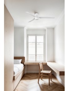 Il motore consuma da soli 2,8 W fino a un massimo di 36 W, supportando sei livelli di velocità. La funzione estate/inverno è facilmente attivabile via telecomando per invertire la rotazione delle pale: rinfrescare in estate o ridistribuire l’aria calda in inverno.