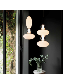 Una sospensione raffinata e a forte impatto visivo, perfetta per aggiungere personalità, equilibrio ed eleganza luminosa agli ambienti interni.