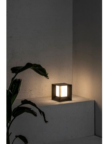 Lampada quadrata in alluminio con diffusore in vetro trasparente per l'illuminazione esterna. Ha un design moderno e proietta la luce dai quattro lati, ideale per illuminare giardini e terrazze