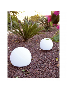 La forma arrotondata, ispirata a un sasso levigato dall’acqua, si integra con naturalezza in ogni contesto, dal moderno al più rustico. Grazie al pratico cavo con spina e al picchetto incluso, questa lampada può essere fissata facilmente al terreno o spostata dove serve, offrendo massima flessibilità d’uso.
