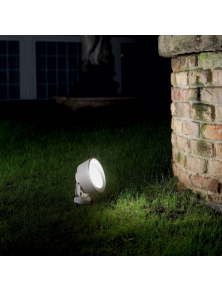 Proiettore orientabile in alluminio con fissaggio a plafone o con picchetto, superficie anodizzata e verniciata a polveri. LED integrato ad efficienza energetica con elevata resa cromatica. Visiera antiabbagliamento in opzione.
