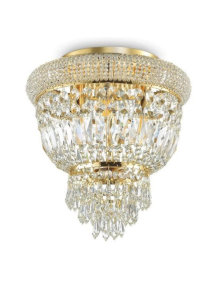 De Dubai PL3 plafondlamp van Ideal Lux is een verfijnde verlichtingsoplossing, ontworpen om interieurs te verrijken met tijdloze elegantie. Het metalen frame, verkrijgbaar in chroom of messing, ondersteunt een cascade van transparante geslepen kristallen: parels, octagons en prisma’s die het licht op een kostbare en sfeervolle manier weerkaatsen.