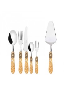 Aladdin gekleurd bestek is gemaakt om magie en prestaties op uw tafel te brengen. Elk stuk is met zorg en aandacht gemaakt: in 18/10 roestvrij staal, ze worden gekenmerkt door een elegant handvat van acryl gecombineerd met een kostbare gevlochten ring met een antiek zilveren afwerking.