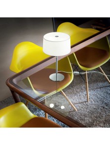 De basis en het lichaam zijn licht aluminium met poederverf. Opalkleurige plastic diffuser. Geïntegreerde LED-lichtbron.