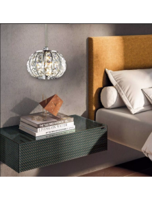 Metalen chroomframe. Decoratieve elementen van zacht glas. Hangers met staalkabels met een lengte die kan worden verstelbaar door automatische kabelstoppen.