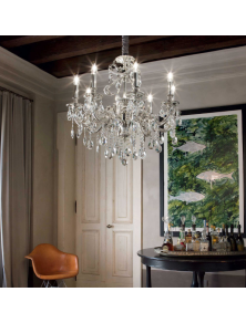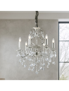 Strauss SP6 van Ideal Lux is een hanglamp met een klassieke, tijdloze uitstraling, ontworpen voor wie zijn interieur wil verrijken met verlichting die niet alleen functioneel is, maar ook sterk decoratief. Deze kroonluchter onderscheidt zich door zijn verfijnde stijl en is ideaal om woonkamers, eetkamers, slaapkamers of zakelijke ruimtes te verfraaien met een warme en elegante sfeer.