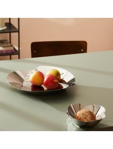 Gemaakt van roestvrij staal 18/10 met een gepolijste afwerking, onderscheidt Resonance zich door zijn verfijnde en eigentijdse design, waardoor het elke ruimte verrijkt. De dunne metalen platen, vakkundig gesneden en overlappend geplaatst, creëren een lichte en luchtige vorm, waardoor de schaal een bijna etherische uitstraling krijgt. De open structuur zorgt niet alleen voor een unieke esthetiek, maar bevordert ook een betere conservering van fruit door optimale luchtcirculatie.