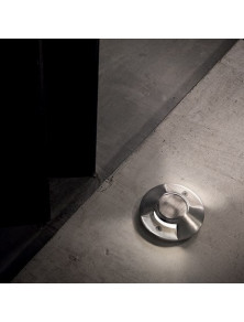 Buitenste vaste behuizing van gegoten aluminium met een ronde omtrek, beschikbaar in drie dimensies, geschikt voor installatie op de grond en op de vloer. Geïntegreerde passiefgekoelde LED's met 30°-optisch licht, CRI 80, beschermingsgraad IP 67, IK 10.
