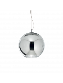De blikvanger is de grote, mondgeblazen glazen kap, verkrijgbaar in verschillende afwerkingen: gerookt, transparant, koper, chroom, verlopen chroom of amber.