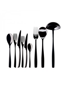 Riviera Black Diamond is de lijn van 18/10 roestvrijstalen bestek met zwarte PVD-afwerking, gemaakt om uw tafel met een geweldige persoonlijkheid te decoreren, die het gewone kan doorbreken als een frisse bries: het combineert een zorgvuldig en verfijnd ontwerp met een uitstekende prestatie, waardoor het zowel geschikt is voor speciale gelegenheden als voor uw dagelijkse leven. Het mes is monoblok gesmeed.