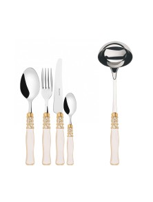 A linha de abordado glamour design é uma combinação superlativa de estética sofisticada com desempenho superior: atenção para equilíbrio, soquete e corte garantias desempenho ideal e precisa de precisão. O lâminas das facas afiado no ponto certo e permitir corte sem esforço. Oergonomia do cabos permite soquete ideal acompanhados ensaios dos garfos afiado como uma regra de arte para assar qualquer delicadeza, perfeitamente.