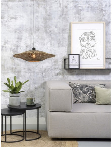 Um estilo boêmio e étnico para esta lâmpada que inteligentemente mistura matéria natural e design contemporâneo e mínimo. O lampshade é feito à mão no Vietnã por hastes de rattan tecidas. O material perfurado cria um volume de luz e ar em torno da fonte de luz. Filtros de luz através de diferentes elementos de rattan que criam bela iluminação, um jogo de luzes e sombras. GOOD&MOJO fornece iluminação eco-responsável feita inteiramente de materiais sustentáveis e/ou reciclados