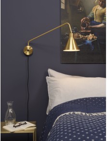 A forma fina e o acabamento preto ou ouro da lâmpada de assoalho de Lyon dar-lhe uma certa leveza. Esta lâmpada de parede de ferro tem influências contemporâneas e industriais. Shade e braço ajustável. Cabo de tecido, com interruptor ON/FF na parede rosa